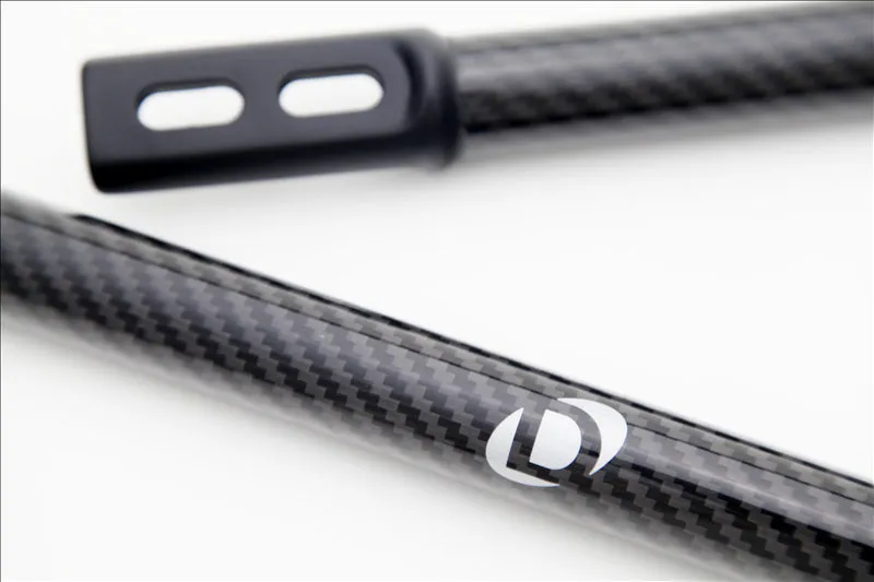 The Dinan carbon fiber strut tower braces are built from aerospace quality aluminum and carbon fiber. The amazingly strong carbon fiber rods are held in place with black powdercoated forged aluminum ends connecting to the stock mounts. Replacing the bare aluminum tube with this beautiful piece will improve chassis rigidity while also cleaning up the look of the engine by framing it in carbon fiber. The beautiful carbon fiber braces may be installed in conjunction with any of the Dinan suspension systems or the stock components and features carbon fiber that matches the high flow carbon fiber intake in color and weave.